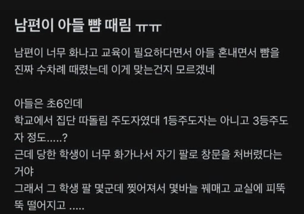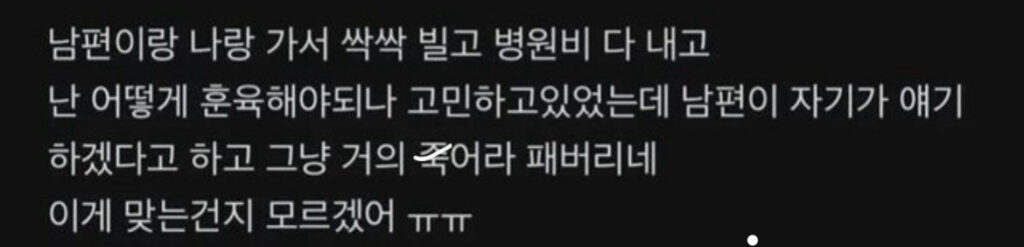 남편이 아들 뺨을 때렸는데,,,글쓴이 uhbijn78 / 2025-12-13 조회수 395 🔥 잡으면 특가 ◀ 이전 글 :대학생에게 사용하면 용서할수 없는 주문 ▶ 다음 글 :실시간 난리난 회사 관련 게시글 근로장려금 받자마자 내가 벌인짓,,,, 잡담/썰📖 / 글쓴이 uhbijn78 기도할때가 아니다 잡담/썰📖 / 글쓴이 uhbijn78 음주 구제카페에 올라온 음주운전자의 글… 잡담/썰📖 / 글쓴이 uhbijn78 알바하다가 갑자기 모두들 조용해진 이유 잡담/썰📖 / 글쓴이 uhbijn78