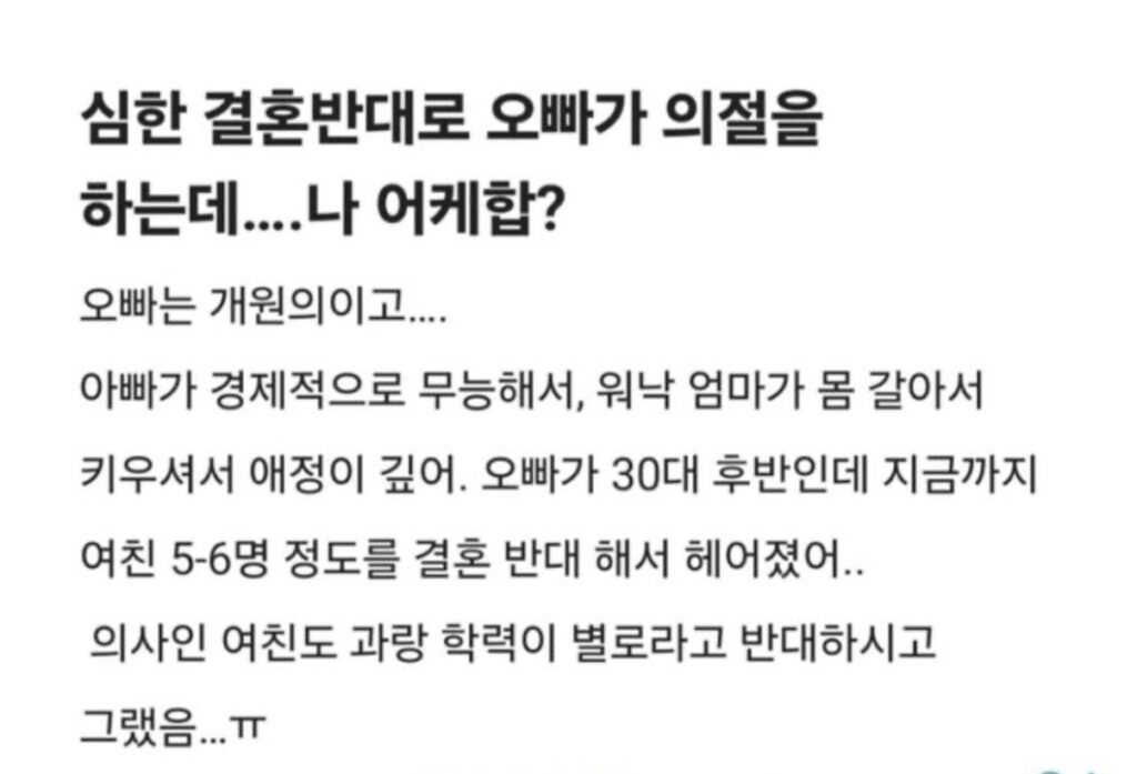 결혼 반대로 가족들과 의절한 오빠글쓴이 uhbijn78 / 2025-12-16 조회수 127 🔥 잡으면 특가 ㅓ 🔥 잡으면 특가 ◀ 이전 글 :편의점 알바 두달하고 수입 0원 된 썰 ▶ 다음 글 :내 나이 29살인데 오늘 여자상사한테 귀엽단 소리들음 관련 게시글 딸의 식당에 간 아버지의 솔직한 리뷰 잡담/썰📖 / 글쓴이 uhbijn78 남자친구가 직업을 속이고 만났어요,, 어떡하죠? 잡담/썰📖 / 글쓴이 uhbijn78 27살 딸이 41살 남자를 만나요,,, 잡담/썰📖 / 글쓴이 uhbijn78 남편이 아들 뺨을 때렸는데,,, 잡담/썰📖 / 글쓴이 uhbijn78